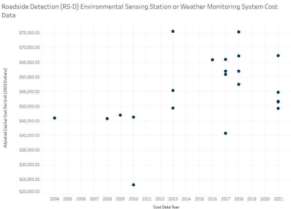 Roadside Detection (RS-D) ESS or Weather Monitoring System Adjusted Capital Cost Scatter Plot