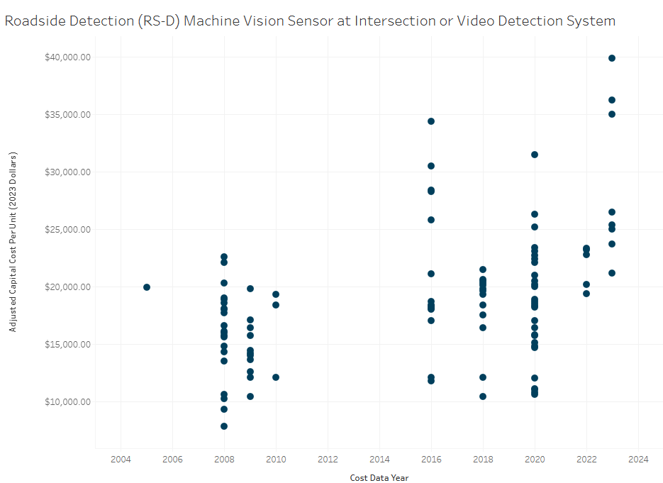 Roadside Detection (RS-D) Machine Vision Sensor at Intersection or Video Detection System Adjusted Capital Cost Scatter Plot