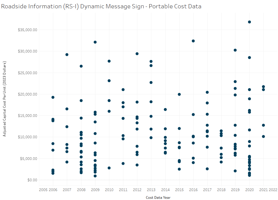 Roadside Information (RS-I) Dynamic Message Sign - Portable Adjusted Capital Cost Scatter Plot